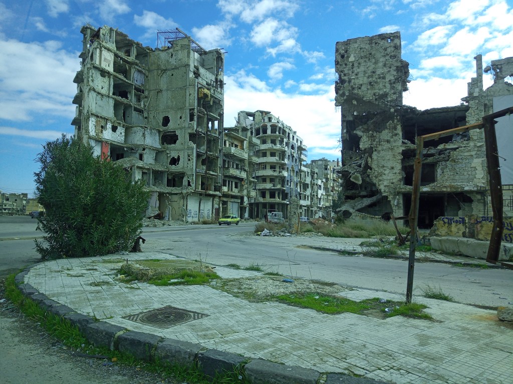Homsis on tõesti suured kahjustused. Pommitatud piirkond on suur. Inimesi sel ajal majades enam polnud. Mässuliste pommitusjäljed, tegid enda ja valitsusvägede vahele puhvertsooni. Bilal ütleb, mõnikord teevad perega Damaskusest Homsi väljasõidu. Vaatavad varemeid, külastavad kommipoodi ja tagasi. Kommipoodi meie ei pääse. On reede. Puhkepäev. Osad poed lahti, aga mitte kõik. Üks kohalik ütleb, et ISISt toetavad Türgi, USA ja Saudi-Araabia valitsused. “Raha saavad. Ja palju. Nad ju palgamõrvarid Üle 1000 dollari kindlasti kuus.” Olen vait. Poliitikast küll tahaks rääkida, aga ise teemaks ei võta. Viimase kümne aasta konfliktides on liiga palju tsiviilisikutest kannatanuid, mida mõlemad pooled ohvriks tõid. Lisaks olen tähele pannud, et giidi poolt Eesti nimetamine Venemaa naabriks toob lihtsamalt passid kontrolli käest tagasi, kui Eesti nimetamine põhjamaaks.