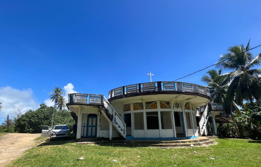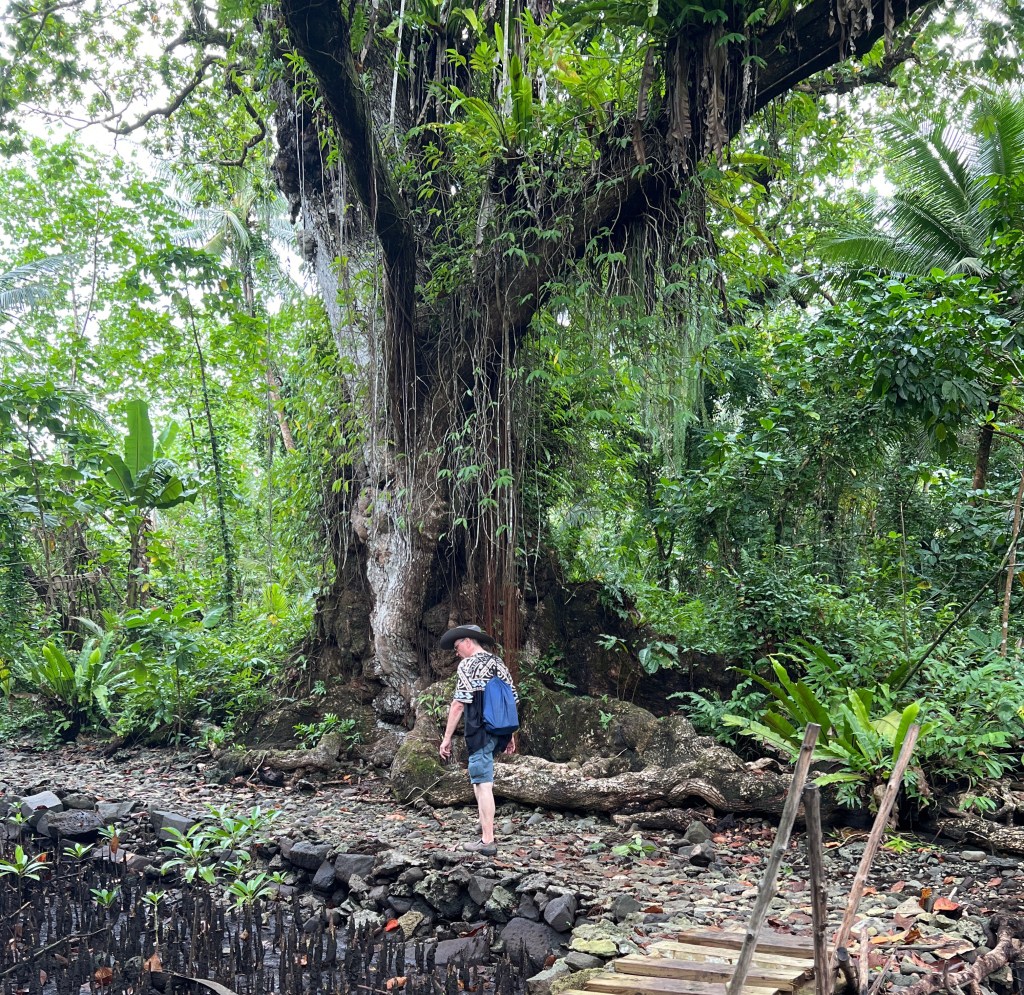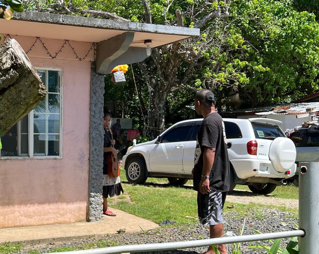 Läksime vaatama saare teises otsas 7km kaugusel asuvat II maailmasõjaaegset jaapanlaste ehitatud tuletorni. Kui arvatava matkatee alguseni oli umbes kilomeeter, peatas meid vastutulev auto ja sealt jooksis välja meie poole teismeline tüdruk ja tema järel umbes 35 aastane mees. “Kuhu te lähete?” —“Tuletorni vaatama, kas on õige tee?”–“Jah, sõidate kirikuni ja sealt edasi siis…. aga te peate maksma”–“Ok, kellele ja kui palju?“–“Kuna mina olen üks nendest, kellel seal maa on, siis mulle. 20 dollarit nägu.”–“Et siis nagu 40 kokku? “–“Jah”. “Mis mõttes nii palju? Mu meelest oli vähem. 3 oli” (pakun huupi eelmise saare näitel)- „Ei, kolm küll pole. Kes ütles, et kolm?”–“Noh, aga kuidas sulle maksame. Kas sa annad kviitungi?”— “Ei, mingit kviitungit pole mul anda”–“Aga kui teised küsivad ka meilt ka raha?”–“No siis öelge, et te olete maksnud.”…………:D….. “Kuule, sa saad ju aru, et ma siin keset teed esimest korda näen sind ja mul pole aimugi, kes sa oled. Me teeme nii, et kui me kuhugi jõuame ja pargime, siis maksame, enne ei maksa kellelegi,” “Okey then,” ütles, istus autosse ja sõitis edasi.