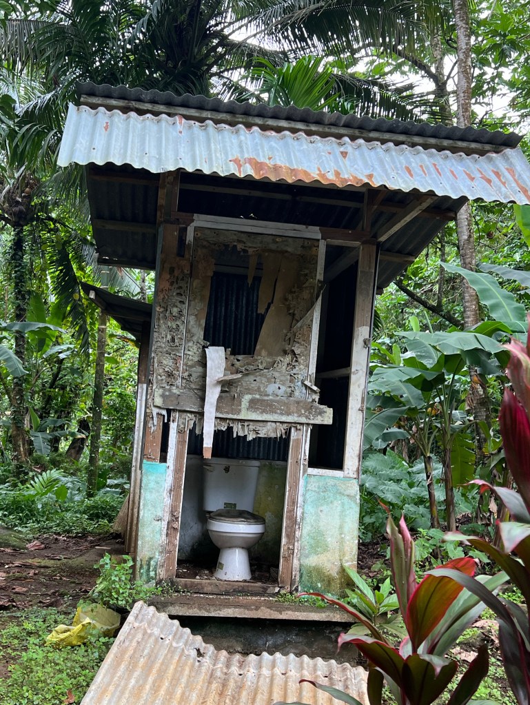 Teerada pole endiselt märgitud, aga meile jookseb vastu poiss, kes ütleb, et läheksime paremale, rada mööda edasi, siis koputaksime punasele uksele ja maksaksime raha. No vähemalt mingid instruktsioonid. Maja pole peaaegu ollagi, aga uks on. Uksele ilmub tüdinud näoga vana, ütleb kolm dollarit nägu ja sirutab käe, anname raha ja uks tõmmatakse uuesti kinni. Kuhu nüüd? Õue peal olev nagamann juhatab meile teed pangede ja väravate vahelt läbi ja siis see algab täpselt selle lagunenud tualetti kõrvalt…
