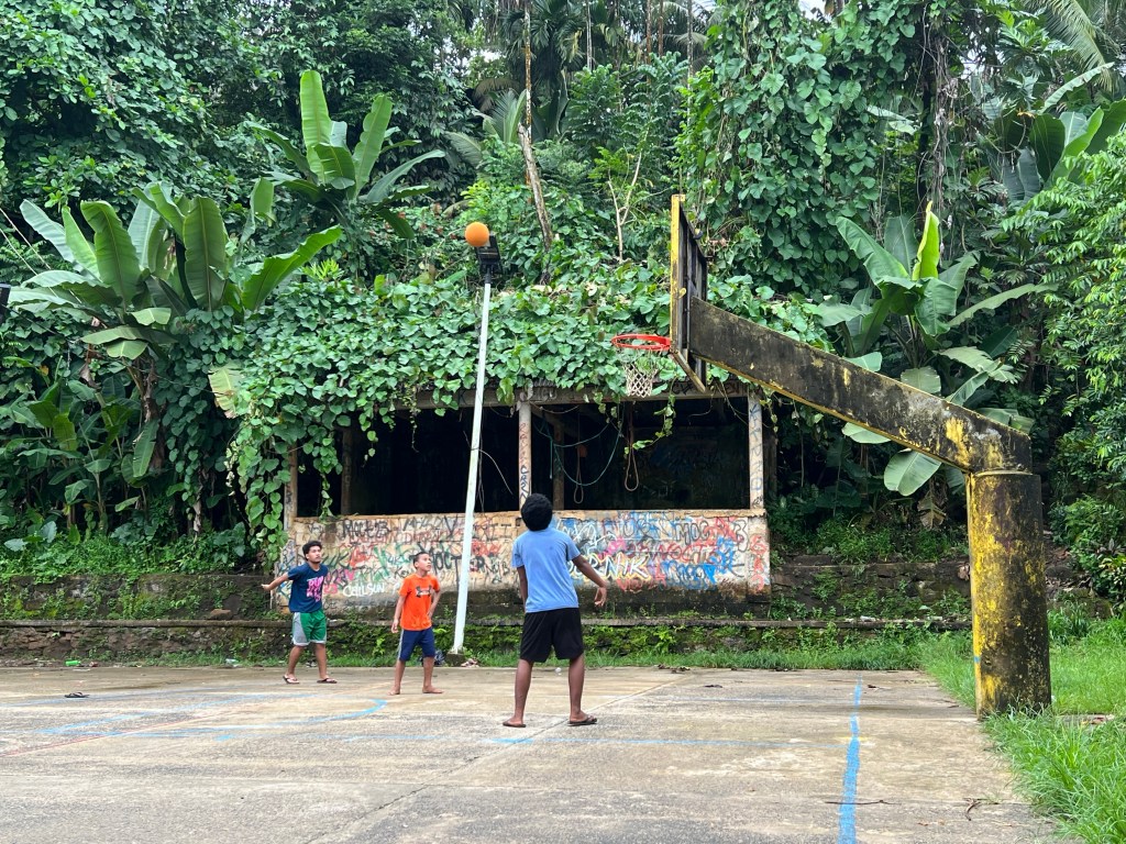 Selgus, et selline käitumine oli sissejuhatus Pohnpeile. Samal õhtul linna peale jalutama minnes, tundus, et peaksin tundma kõiki. “Hi, Hello, Nice to meet you”, kõlas kogu aeg kui jalutasin Kolonias- suurim linn Pohnpeis- või pigem asula 1,5km2 ja 6500 inimest. No eks tervitasin siis vastu ka. Linn ise nägi välja nagu võssa kasvanud küla. Kanad ja koerad. Palju palju koeri ja palju kanu. Hommikune omlett oli kindlasti vabalt kasvanud kanadelt.