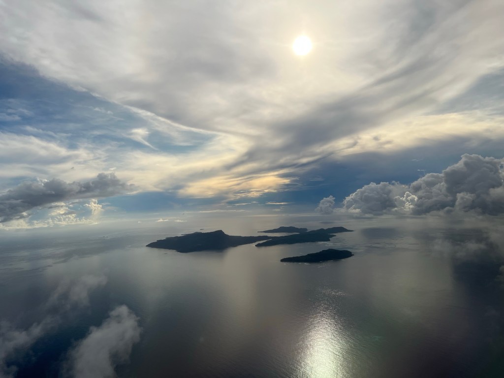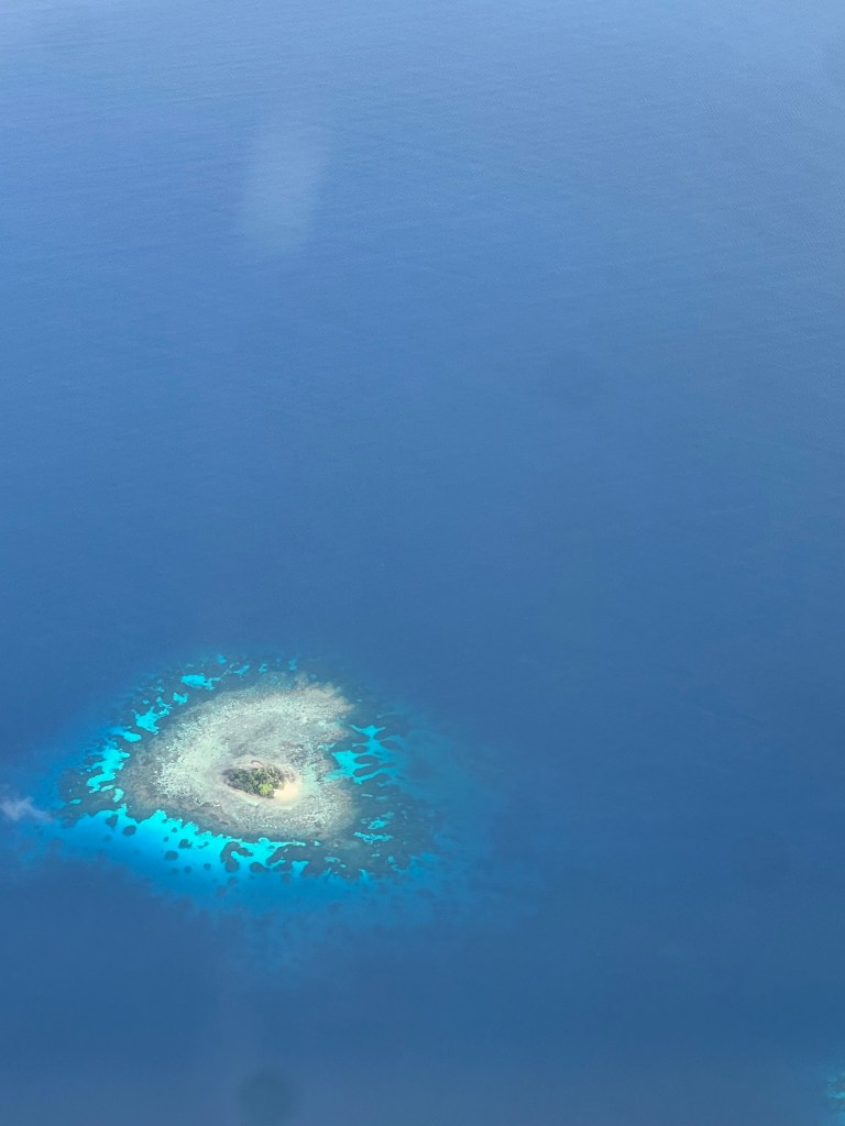 Lennukiaknast vaadates oli palju imeilusaid korallsaari. Üks ilusaimate vaadetega lend.