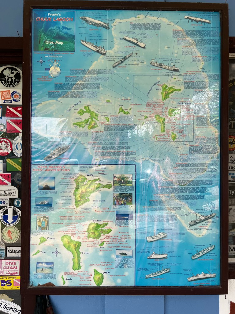 Kuna paari hädavajalikku asja paariks päevaks pidin leidma, külastasin kohalikke poode. Kauplused siin põhiliselt hiina träni täis. Kuhjades asju. Välja arvatud teeäärsed avatud putkad ja paar suveniiripoodi. Ah ACE on ka- meenutab väikest K-rautat ja asjad kenasti riiulitel. Sealt maski leidsingi. Snorgeldamas käisin. Tegelikult tullakse sellele saarele enamasti sukelduma. Üks kauneimaid sukeldumiskohti maailmas. Ka United Airlinesi töötaja esimene küsimus oli, et kas meil jäi sukeldumisvarustus lennult maha. Saarte ümbruses on palju II maailmasõjaaegseid laevu, mis korallidega kaetud. Plus muidugi muu mereelu. Hotellis on terve seltskond, kes otsivad mere alt infot ja säilmeid USA hukkunud sõdurite kohta, et neile siis väärikalt austust avaldada. Riigitöö, teatab mulle noor sportlik naine naerdes, et tema selle töö üle ei kurda.