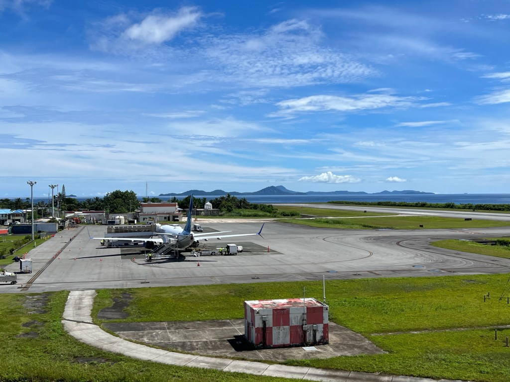 Meie lend United Airlinesiga tegi Majurost Pohnpeisse jõudmiseks kaks vahepeatust. Üks Marshalli saartele kuuluval saarel, kus elavad ainult USA sõjaväelased (isegi teenindav personal käib naabersaarelt) ja teine peatus Korsae -üks neljas Mikroneesia Liiduriigi piirkonnast. Kuna vahepeatusel lubati korraks ka seal maale, kasutasime võimalust. Meie vaatasime saart ja saar vaatas vastu. Või tegelikult küll meie saart ja kohalikud meid, turistid pole kindlasti seal igapäevased külalised (või oli meil nägu moosine vms)