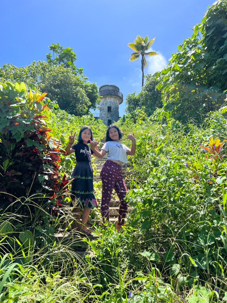 Üks mees ootas aga mind oma maja nurga juures ja küsis, kuhu ma lähen. No sama vastus. — “Mul vanaema maja seal tuletorni juures, sa pead mulle maksma”. Noo… täitsa juhtme ajab kokku. Aga no saan juba aru, kellelegi ma maksma pean. “Kui palju ja kuidas ma tõestan, et et ma maksnud olen ja teistele rohkem ei pea”. “10 dollarit” Pidas mõttepausi. Rääkis midagi seljataga oleva vanema naise ja teismelistega. “Sinuga tullakse kaasa”… No ja siis nii oligi, ühe neljateistaastase piigaga liitus teel veel kaks noort neidu ja nii me sinna mäkke läksime. Majade juures hõikusid nad kohalikega vastastikku- tõenäoliselt, et olen maksnud ja kõndisime edasi. No ausalt, seda rada mai ise küll üles leidnud poleks. Kohati oli rajaks palju nimetada.. Tüdrukud nuputasid sõnu inglise keeles ja mina nuputasin, mida nad sellega öelda tahavad. Ja selle ideaalse giiditeenuse eest ja et nad minuga selles palavuses käisid, tasusin eraldi, mitte et nad küsinud oleks. Väärt käik.