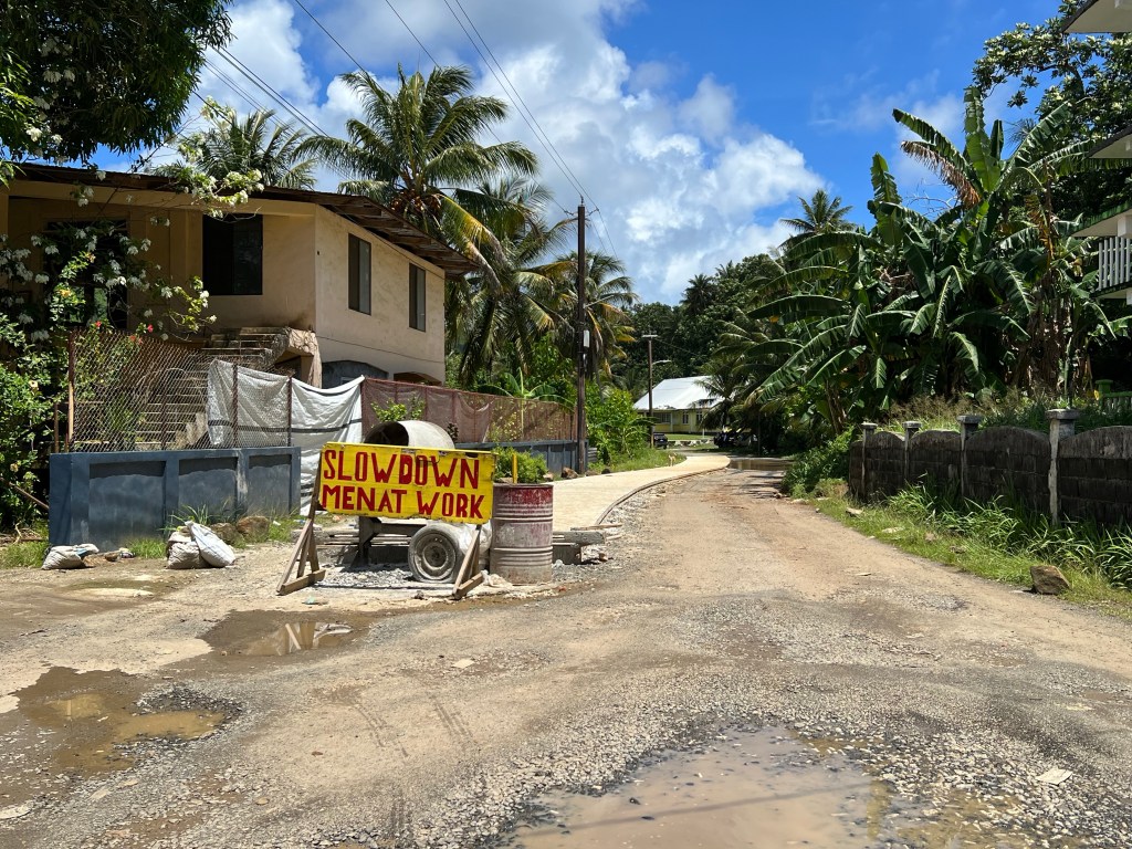 Auto olime seekord ette broneerinud ja saime vähem kui 500 km läbisõiduga Mitsubishi Outlander Sporti. Numbrimärkideta. Selle kohta küsides, viitab rendile andja, et firma logo ju küljel. OK siis. Andry teatas, et sellega sõidab tema ka, eelmise auto roolimise katsest loobus. Maksimaalne kiirus on saarel 40 km tunnis, aga selle kiiruse suutsime saavutada vaid paaril lühikesel lõigul. Enamasti veereb autode rivi aeglaselt august auku, aga üksteise vastu ollakse üliviisakad. Kui keegi tahab vahele pöörata kõrvalteelt, välja tagurdada jne, siis tal on suurem võimalus liikuda kui peateel sõitjal, aga nagu ma ütlesin, pidurdada pole vaja, sest kiirust pole. Oleme juba mitu korda põhilise tee läbinud, 10 km maksimaalselt üks ots, st sõidame randade, restorani ja hotelli vahet. Üle saare lähevad ka ehk teed, aga veel auklikumad. Eelmise saare Pohnpei teed olid sellega võrreldes ikka väga head. Üllatusena loen Wikipediast, et Hiina on andud 2020 aasta andmetel Chuukile 50 miljonit dollarit teede ja valitsuskopleksi ehitamiseks. See valisuse hootentekopleks näeb tõesti uhke välja- nagu ei kuulukski saarele. Aga teedelt on raske jälgi toetusest näha.