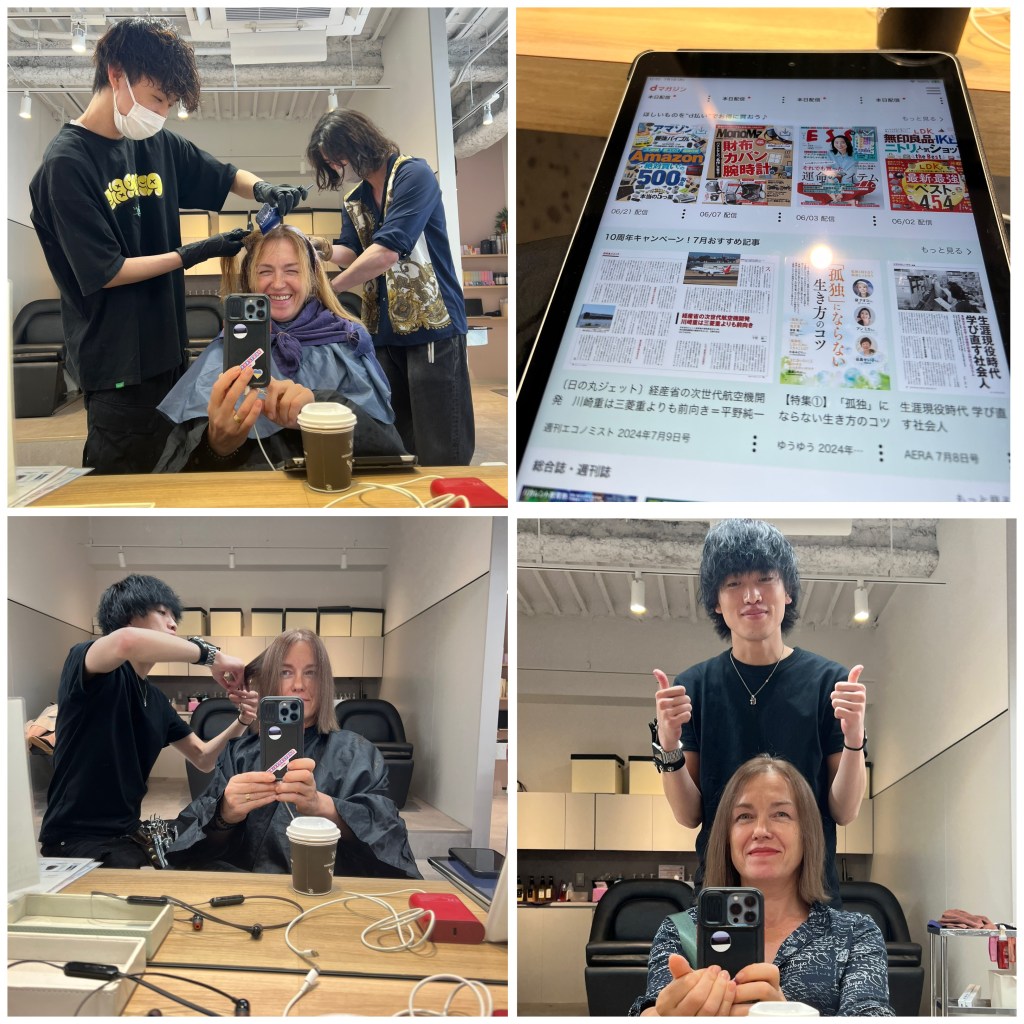 🧒🏻 Peaaegu ainuke juuksevärv kohalikel on must. Ahjaa, see polnudki üllatus. Läksin ka Tokyos juuksurisse. Jaapanikeeles käemärkidega leppisime kokku- juuksed maha ja värv alla. Anti kätte tahvelarvuti, kust sain lugeda suures valikus jaapanikeelseid lehti. Õnneks piltidega. Värvi panid korraga pähe kaks juuksurit, lõikas kolmas.
