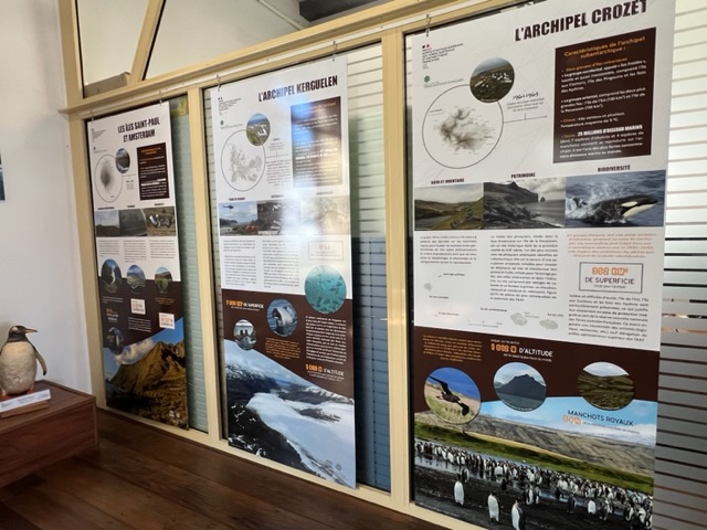 We arrived in Saint Pierre on Sunday, October 20th, and stayed overnight in a hotel near the TAAF headquarters to be there first thing Monday morning for the headquarters opening at 9:00 AM. The headquarters itself is a fascinating combination of administrative offices, a small but informative museum, a souvenir shop, and, of course, an extensive collection of philatelic products. The museum’s exhibits, including information panels and video displays, showcased the breathtaking beauty of the untouched landscapes of the French Southern and Antarctic Lands. Despite being limited to the headquarters and the capital, the visuals left a powerful impression.