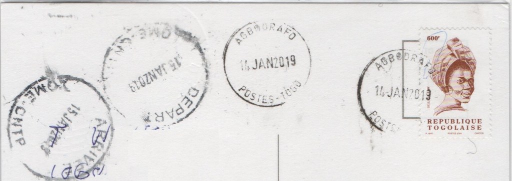 - The visited post office: Poste D’agbodrafo, Poste Lome Port, SPT Societé des Postes du Togo – Direction Générale