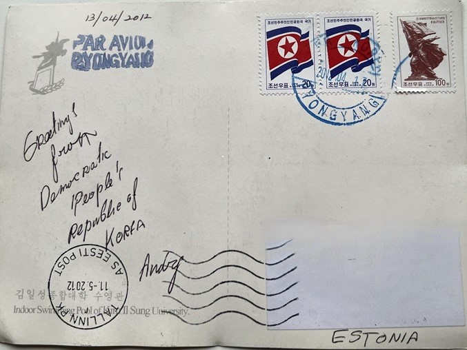 Given the common rumors that all mail was being read, Andry decided to write simply “Greetings from Democratic People’s Republic of Korea” on the postcards, in English, even the one he sent home. This, he reasoned, would be quicker for anyone who might have to read the texts and expedite the delivery. He was also warned not to refer to the country as North Korea, as this might prevent letters from leaving the country.