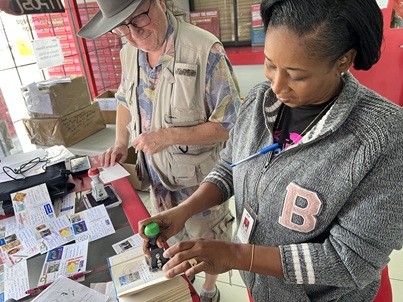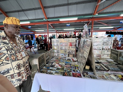 The post office near the airport sold both regular postcards and First Day Covers. But the real treasure were the employees- Nikeisha, Laureen and Denise. The philatelic department was closed and under construction, so we couldn’t enter those rooms. Regardless, the staff came out to the main post office side and introduced us to their stamps and stamped our cards with a date stamp. What made it even more interesting was that some of the stamps we bought had been surcharged during different periods, which made them all the more unique.