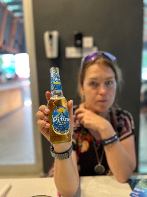 When I shared my usual elephant question — a joke I collect from different countries (“What would you as a local do if you saw an elephant?”) — he answered in true Saint Lucian spirit: “I would grab our famous Piton beer and keep watching.”