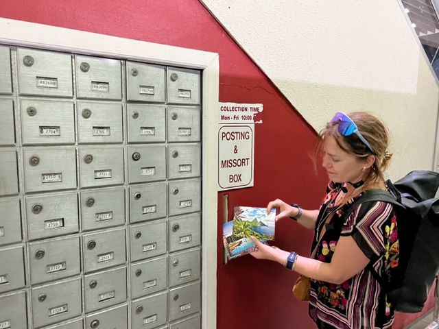 Finally, we had some success at Crazy Al’s Beach Shack — a souvenir shop that sold both postcards and stamps. The salesperson quoted a price that was a bit different from the official website: one Eastern Caribbean dollar per postcard, which seemed to cover postage to the US. Since we weren’t sure if this was enough for Europe, we decided to play it safe and added a second stamp to the cards going to Europe. Even with two stamps, it still felt quite inexpensive.