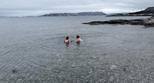 One evening, in Greenland, I also went to a sauna—a small wooden cabin perched on the rocky coast, overlooking the Arctic Ocean. Between sauna brakes, I stepped into the freezing water. My brain told me not to—loud and clear. But one of the other sauna guests, Annasofie, a woman who had moved here from Denmark earlier this month for her husband’s job, walked into the water with me, speaking calmly the whole time. And before I knew it, I was neck-deep in Arctic sea, no longer thinking—just being…. till I run out 😀