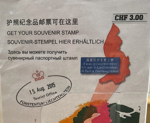 For an extra souvenir from Liechtenstein, you can have your passport stamped — either at the post office or at the Philately Museum in Vaduz — for 3 Swiss francs. The museum itself is small but well put together, with clear displays and just the right amount of detail to give you a good overview of the country’s stamp history.