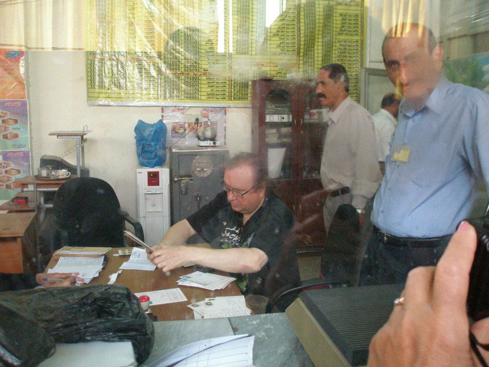 By that point, the guides had realized that Andry wasn’t about to give up on finding a way to visit a post office. So the next morning, before leaving Baghdad, they agreed to a stop. It wasn’t the main post office, but presumably one they felt was safe enough.