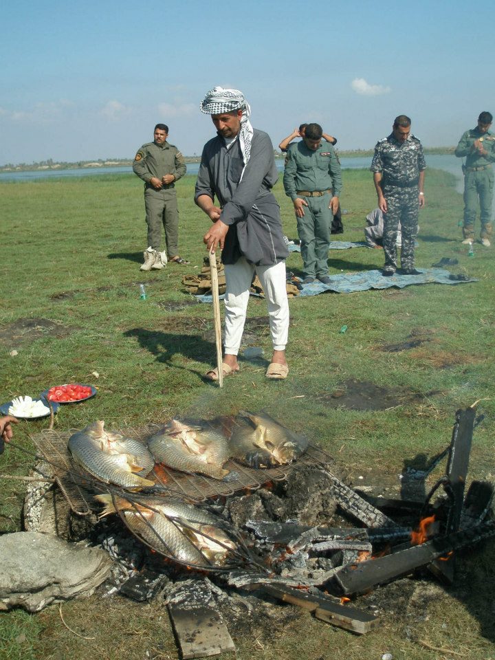 On our last day, we took wooden boats through the river delta, to a small island near the confluence of the Tigris and Euphrates. There, fresh and delicious fish was grilled for us in the open air. Naturally, even for this relaxing outing, our armed guards came along — apparently, once again, out of “sheer boredom.” This time, however, they left the machine guns behind.