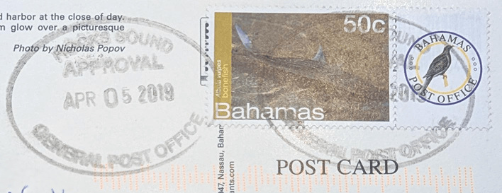 - Cost of sending mail: 0,50 Bahama dollar (0,50 Usd)