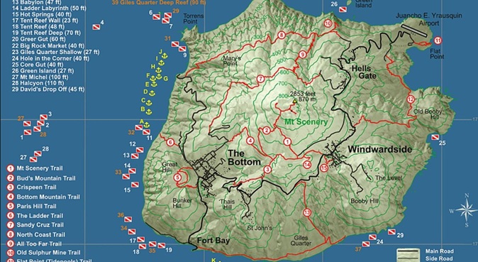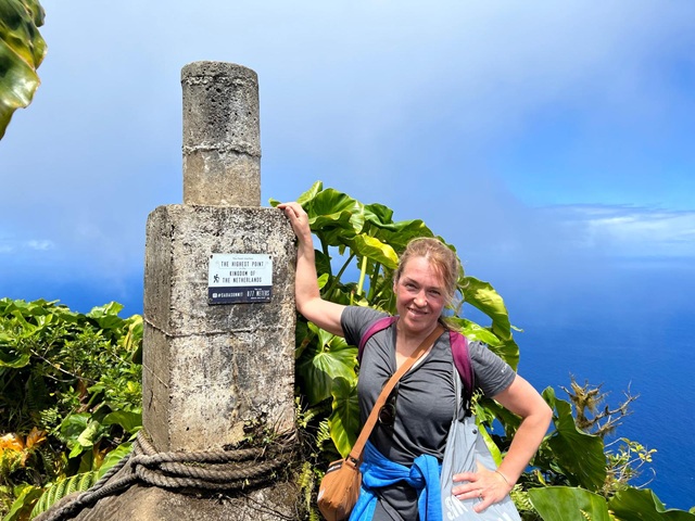 I filled in my postcards there, but my second mission was calling: to climb the highest peak in the Kingdom of the Netherlands. Mount Scenery rises 870 m (2,854 ft), officially the highest point in the country.