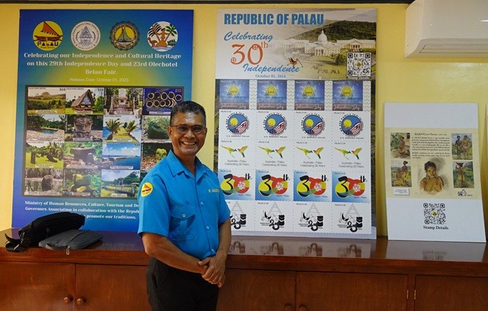 And the timing could not have been better! Almost on cue, in walked Santy, the Postmaster General of Palau. It felt as if we had arranged the meeting in advance. After a brief greeting, he stepped over to the stamp posters — and that was the start of a truly fascinating journey for me. He pointed to the displays and began explaining the stories behind them — natural wonders, historical milestones, cultural heritage. Here, the stamps truly tell the nation’s story.