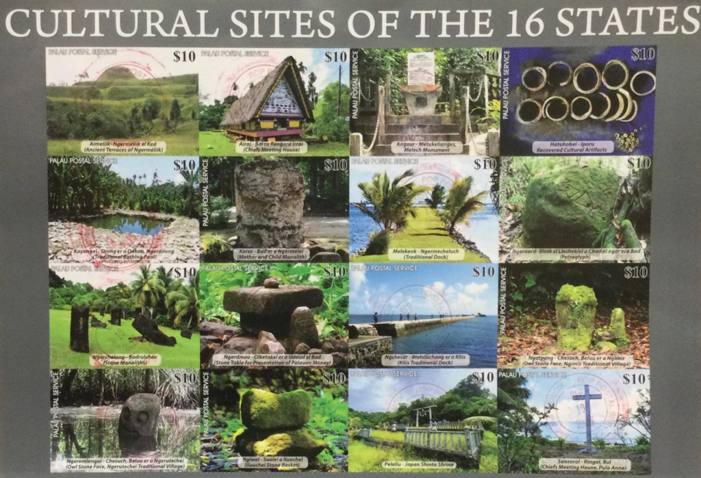 He then showed me a stamp series celebrating Palau’s independence and talked about the close ties with the U.S., Japan, Taiwan, and Australia. For such a small nation, foreign support is vital, and Palau sits at a strategic crossroads between Asia, Oceania, and the Pacific. Another series, Cultural Sites of the 16 States, featured the famous terraced earthworks — massive ancient structures that testify to the ingenuity of Palau’s ancestors.