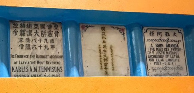 ‘But we had another, more unusual reason to visit: Vahindra — born in Estonia in 1883 (Karl Tõnisson / Karlis Tennisons) — and his disciple Friedrich Voldemar Lustig. Both had colourful and contradictory lives, and both spent their final years in Yangon, where they passed away and are buried in a nearby Buddhist temple complex. Both were among the earliest Western-born Buddhist monks connected to Burma.
