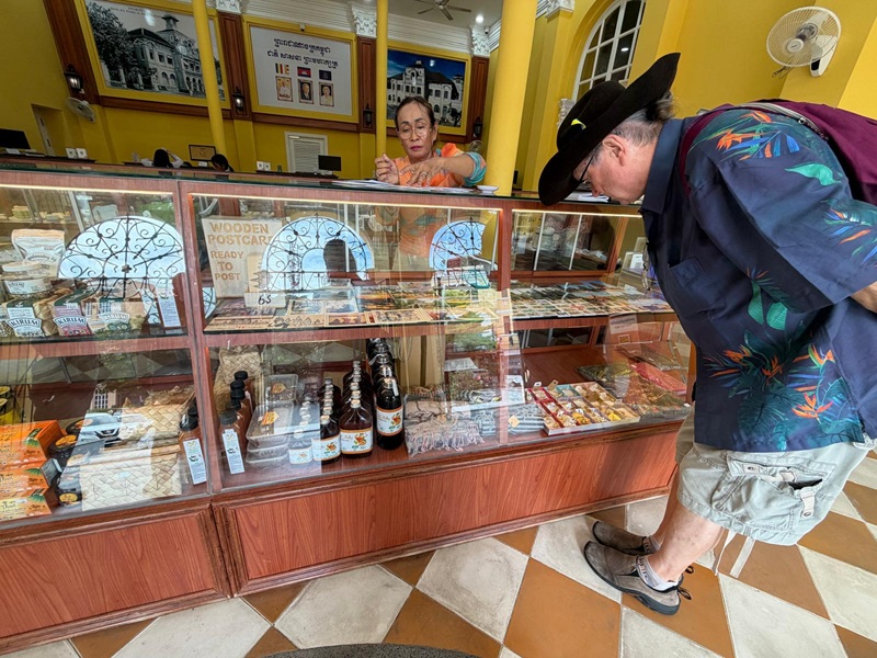 So the next morning, noticing that the post office doors were already open, we went in after breakfast. Right opposite the entrance stood a large counter selling stamps and souvenirs, promising all the philatelic joy one could hope for. Our plan was simple: buy some nice Cambodian stamps to complement the small selection we had already sourced earlier from the European philatelic secondary market.